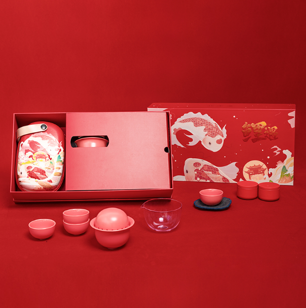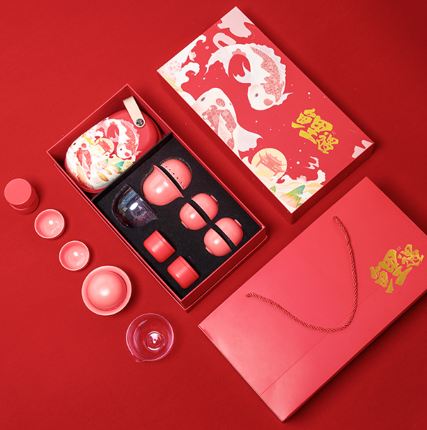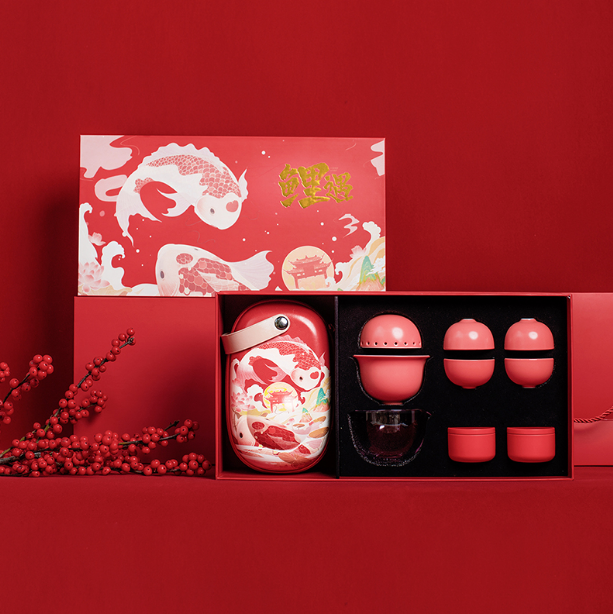 禮盒套裝茶具套裝 鯉遇開元 便攜功夫茶具一壺四杯 商務(wù)伴手禮