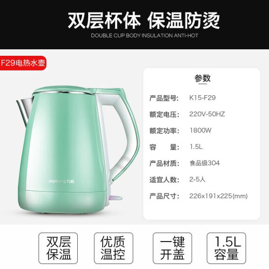 九陽 電熱水壺 燒水壺 1.5L304不銹鋼 K15-F29 福利禮品