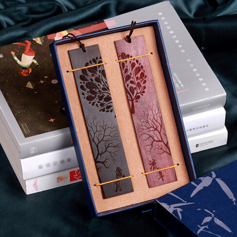 黑檀木 中國風(fēng)復(fù)古書簽 兩件禮盒裝 紅木書簽 禮品定制